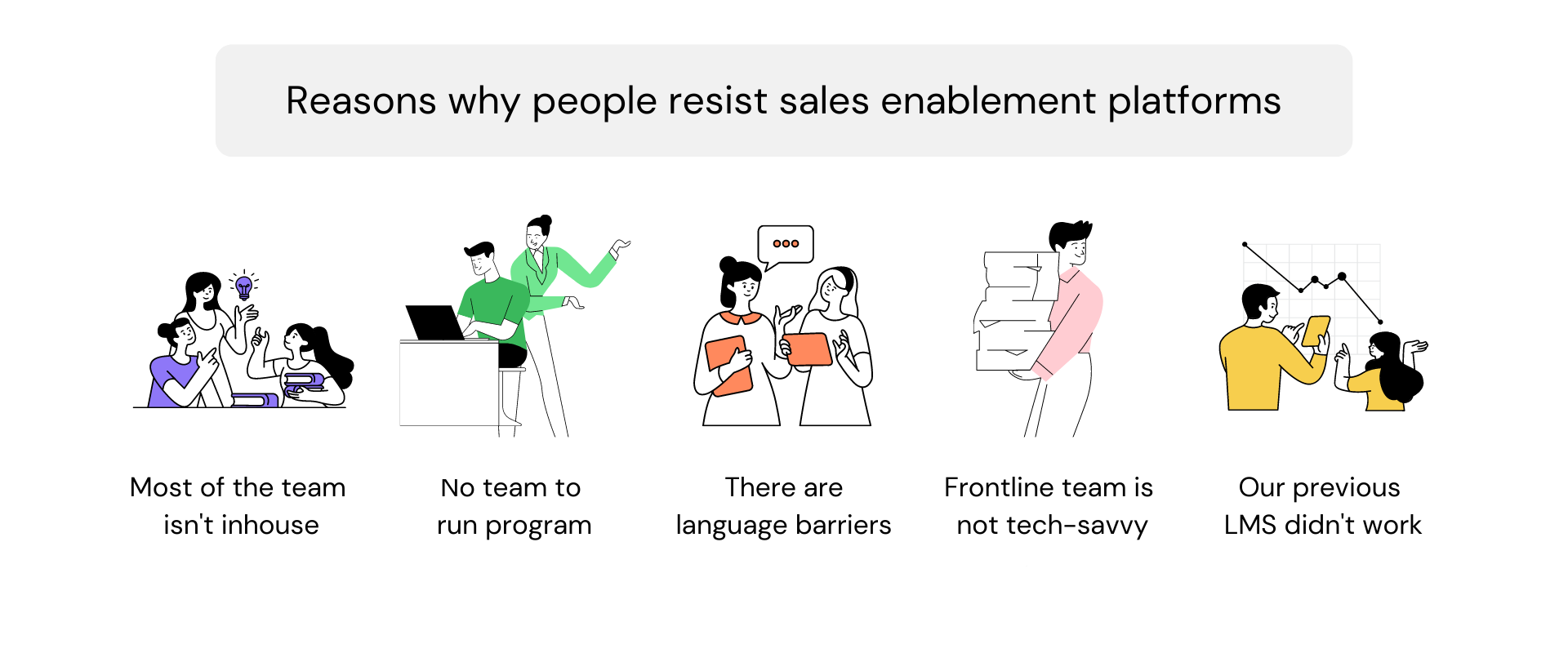 We’ve come across multiple cases where companies stay away from a sales enablement tool because of adoption challenges. Here are just a few of the reasons we’ve heard: