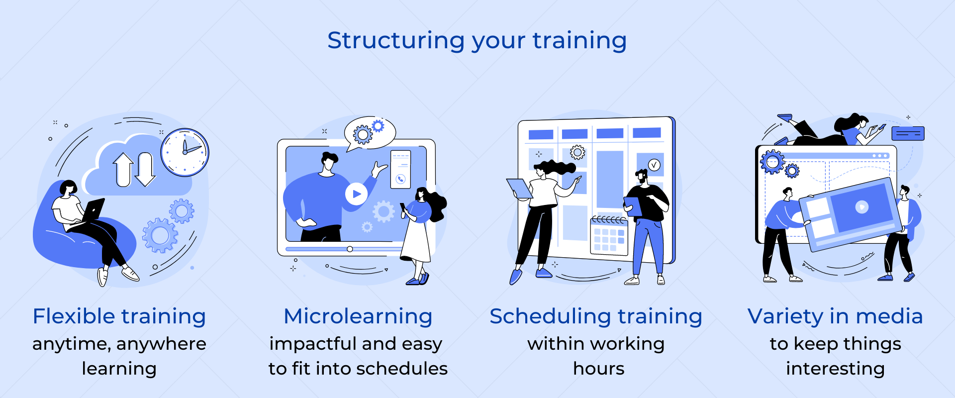 Flexible training modules: Make sure your training is available to be consumed anytime, anywhere. Giving your employees the flexibility to decide when they can take their training can help make it feel less like a task.