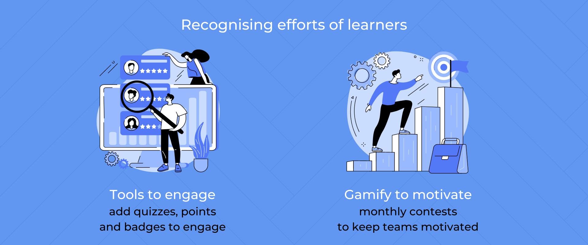 Gamification to motivate: To further motivate your employees, you could launch a learning-based contest. This could be a monthly affair, where you get your learners on a leaderboard, based on their points, the winners get vouchers or certificates. This will keep employees coming back for more learning, without making it seem like a burden.